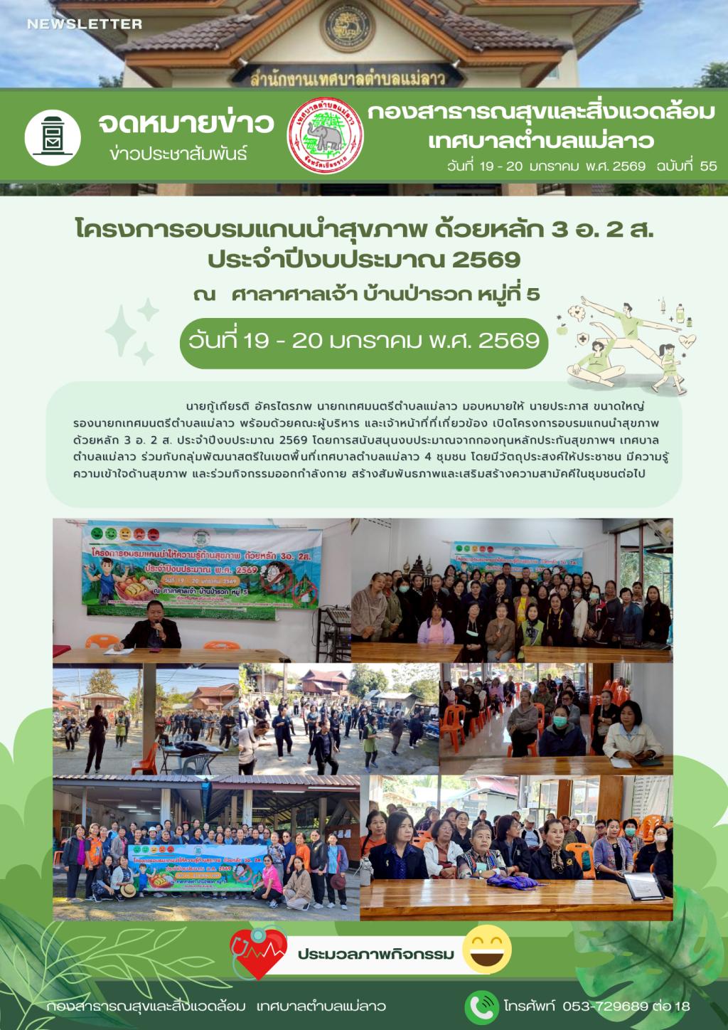 โครงการอบรมแกนนำสุขภาพด้วยหลัก 3 อ. 2 ส.ปีงบประมาณ พ.ศ. 2569 ณ ศาลาศาลเจ้า บ้านป่ารวก หมู่ที่ 5...