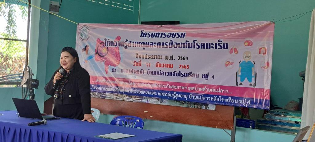 โครงการอบรมให้ความรู้สาเหตุและการป้องกันโรคมะเร็ง ปีงบประมาณ 2569 ณ ศาลาศาลเจ้า บ้านแม่ลาวหลังโรงเรียน หมู่ 4