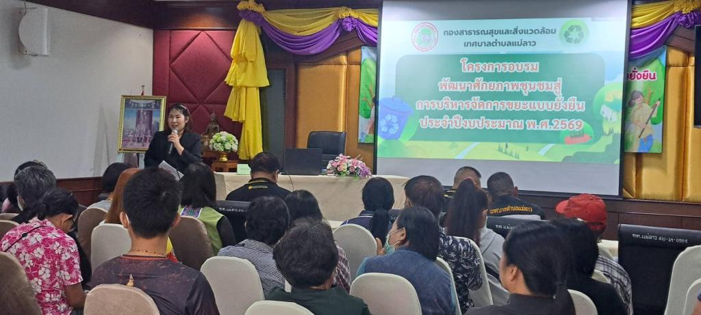 9 เมษายน 2569 นายกู้เกียรติ อัครไตรภพ นายกเทศมนตรีตำบลแม่ลาว , ปลัดเทศบาลฯ พร้อมด้วยคณะผู้บริหารฯ อนุมัติให้กองสาธารณสุขและสิ่งแวดล้อม น.ส.อภิญญา เป็งเรือน นักวิชาการสาธารณสุขปฏิบัติการ และเจ้าหน้าที่ที่เกี่ยวข้อง จัดทำโครงการพัฒนาศักยภาพชุมชนสู่การบริหารจัดการขยะแบบยั่งยืน ปีงบประมาณ 2569 ( M - Power พลังสะอาดด้วยมือเรา) โดยมึวิทยากรผู้ทรงคุณวุฒิ ผศ.ดร.จิรพัฒน์พงษ์ เสนาบุตร , ผศ.ดร.กนกพงษ์ ศรีเที่ยง และ ผศ.อมรรัตน์ ปิ่นชัยมูล มาให้ความรู้แก่กลุ่มบริหารจัดการขยะ 4 ชุมชน ในเขตพื้นที่เทศบาลตำบลแม่ลาว ณ ห้องประชุมเทศบาลตำบลแม่ลาว